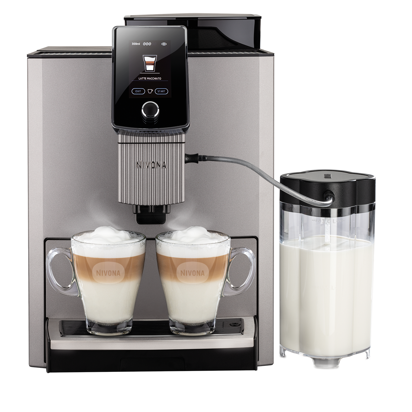 | Ausstattung: | Ausgelegt für 60 bis 65 Tassen am Tag. Optimiert für den Einsatz im Büro mit großem Wassertank und Bohnenbehälter. Quick-Profil und Mengen-Funktion für schnellen Bezug von viel Kaffee. Mit neuem Milchschlauch und easyclean+, sodass sich das Milchsystem auf Knopfdruck reinigen lässt. Für die Reinigung, kein Umstecken des Milchschlauchs mehr nötig. Zwei Thermoblöcke. Quick-Profil. Mengenfunktion. Werkseinstellung der Rezepte änderbar. SPUMATORE OneTouch DUO (für Cappuccino und Co.) 2-Tassen-Funktion für Cappuccino und Co. 2-Tassen-Funktion für Espresso/Kaffee. Pulverfach für vorgemahlenen Kaffee (für eine Portion). Entnehmbarer Wassertank. Heckrollen. Tassenbeleuchtung (zweifarbig). Bluetooth für Verbindung mit Nivona-App. |