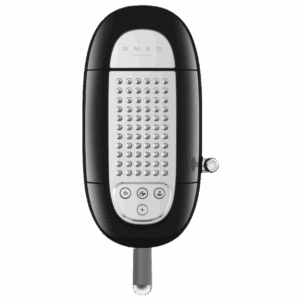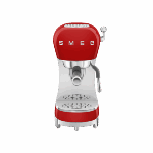| Ausstattung: | Edelstahl-Siebträger mit Griffeinlage aus Kunststoff, Brüheinheit, Tassenträger und Rückwand aus Edelstahl, Bodengruppe verchromt, Metall-Bedienhebel für Cappuccino-Dampffunktion, Thermoblock-Heizsystem, Anti-Tropf-System, Tastenfunktionen beleuchtet, separater Träger für Latte-Macchiato-Gläser, Entkalkungsanzeige, Restwasserschale mit Füllstandsanzeige (herausnehmbar), 3D Smeg-Logo |