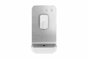 Der Tassenträger aus Edelstahl kann ganz einfach abgenommen werden, so passen auch größere Latte Macchiato-Gläser unter den Kaffee-Auslauf.
